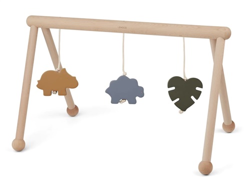 Babyaktivitetsstativ i træ med tre vedhæng i temaet dino mix fra Liewood.