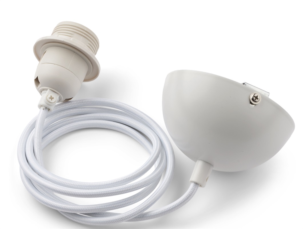 Pendant lampe i farven dove blue med hvid stofledning fra Liewood.