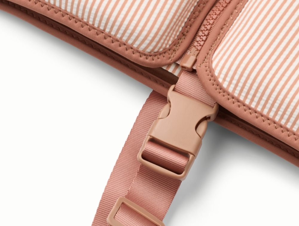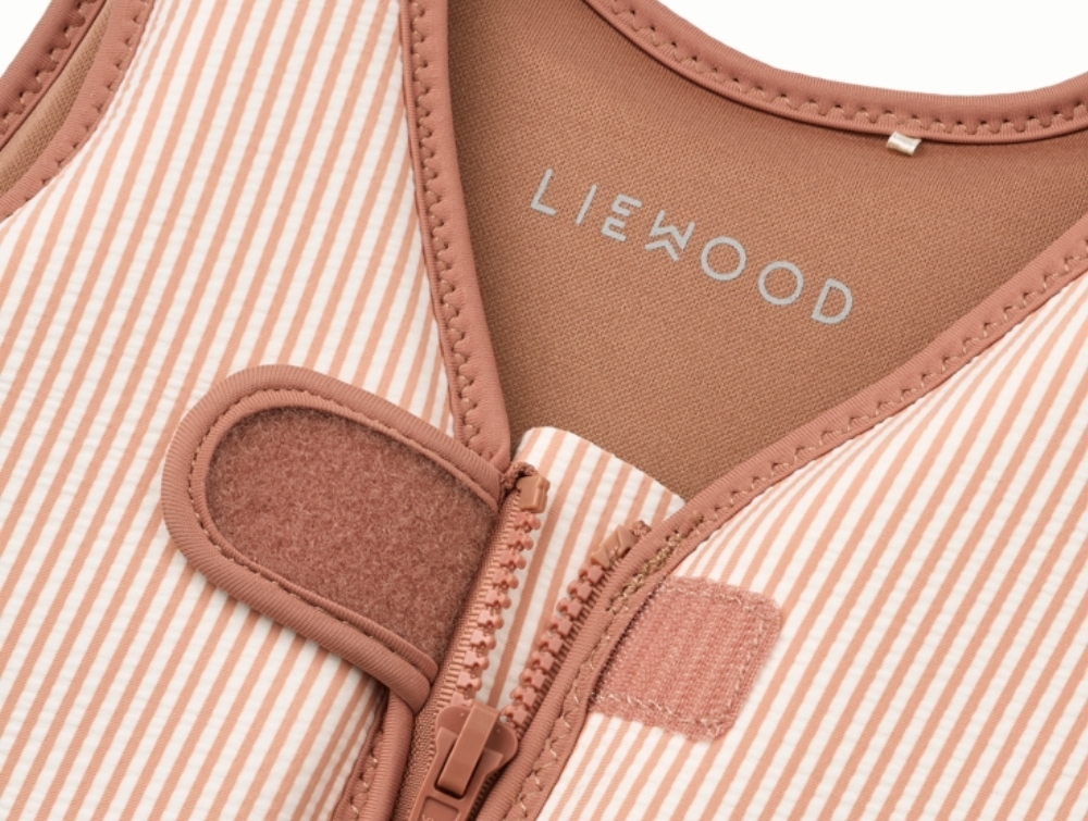 Liewood Dove seersucker svømmevest med striber i pale tuscany nuance set forfraLiewood Dove seersucker svømmevest med striber i pale tuscany nuance set bagfraDetalje af Liewood Dove seersucker svømmevest med lynlås og velcroDetalje af Liewood Dove seersucker svømmevest med justerbar skridtrem
