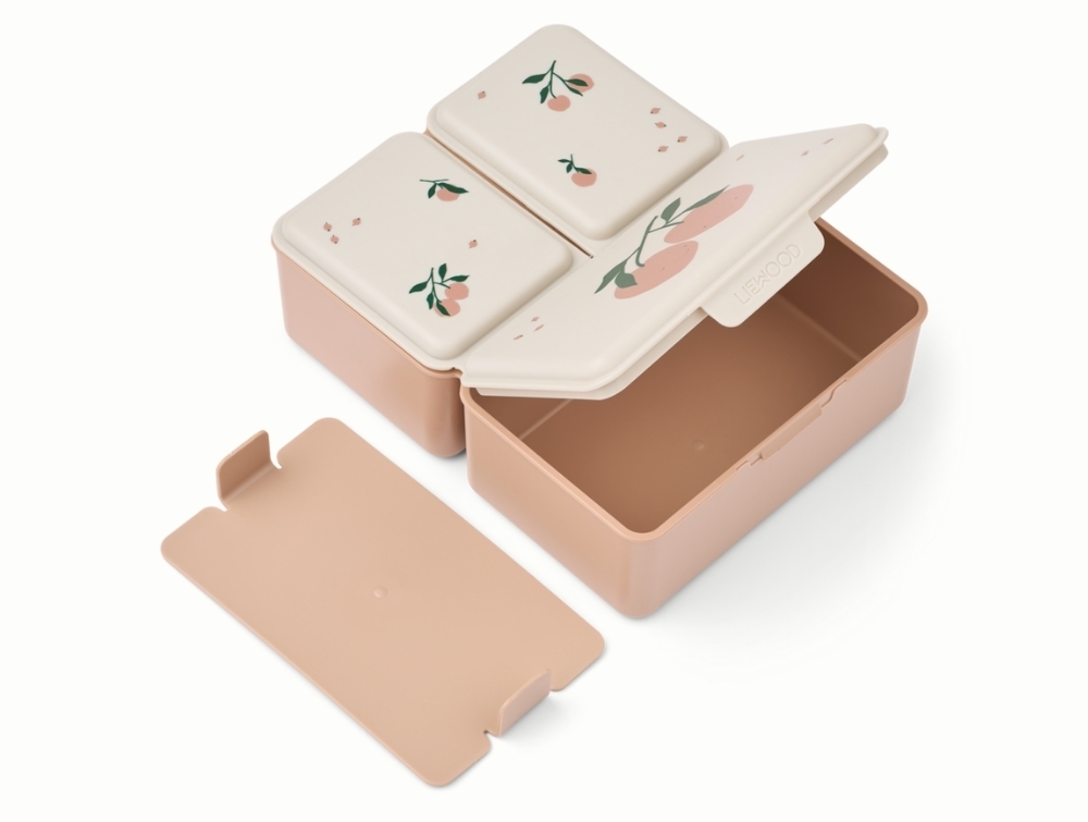 Liewood Driss lunchbox i sea shell med peach me printLiewood Driss lunchbox åben med tre rum