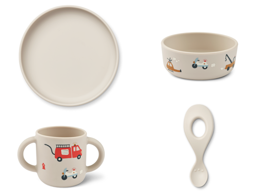Liewood emergency vehicle/sandy spisesæt Vivi silikone (4-pak)