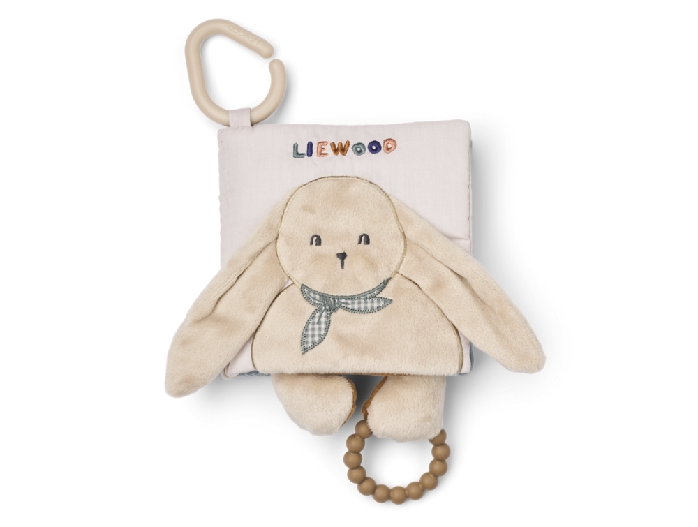 Stofbog i sandy multi mix fra Liewood med kanin og sjove sanseelementer.