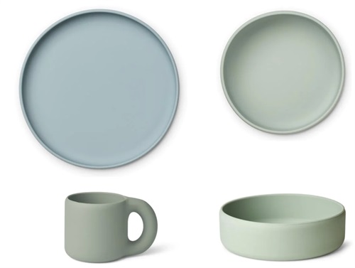 Hvert sæt består af tre essentielle stykker: Kylie kop, Brandon tallerken og Damina skål. Alle lavet af blød og holdbar silikone, der er skånsom mod børns følsomme hud og fri for skadelige kemikalier.