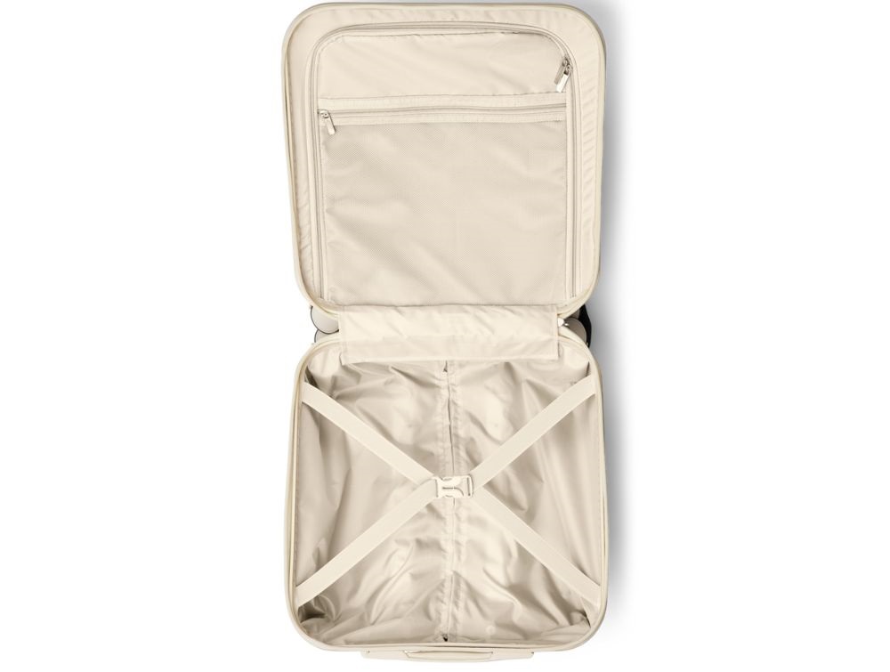 Den firkantede kuffert er både kompakt og rummelig – perfekt til små rejsende. Teleskophåndtaget og de fire hjul gør den nem at trække, uanset om turen går til lufthavnen eller på weekendtur.