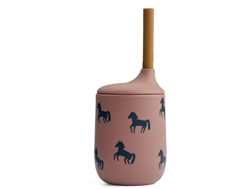 Brudsikker kop til baby og børn i farven dark rosetta med hesteprint og sugerør fra Liewood.