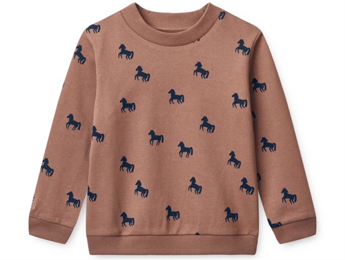 Sweatshirt i farven dark rosetta med hesteprint fra Liewood.