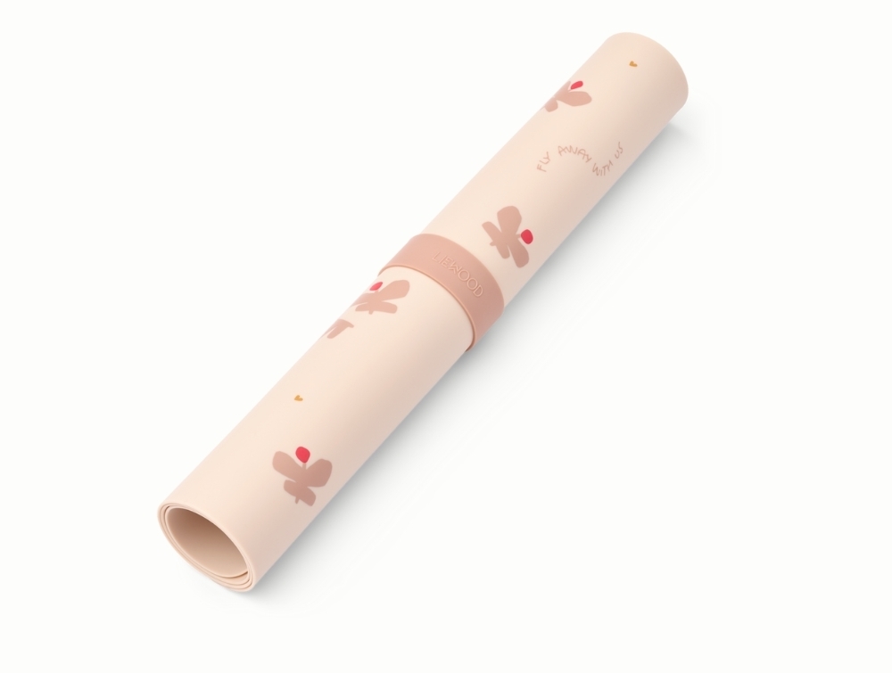 Liewood Jude dækkeserviet i apple blossom med butterfly printLiewood Jude dækkeserviet i silikone rullet sammen