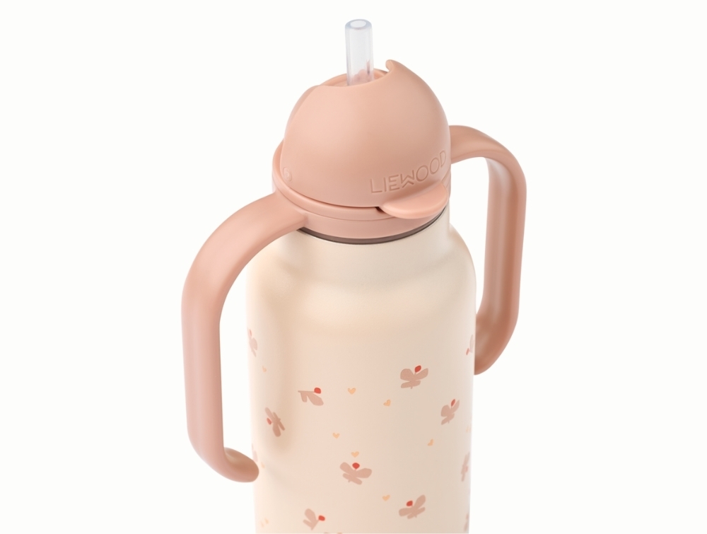 barn drikker af Liewood Kimmie drikkedunk i apple blossom med mini butterfly print 250 mlLiewood Kimmie drikkedunk med to haandtagLiewood Kimmie drikkedunk med sugeroerLiewood Kimmie drikkedunk detalje af laeg og haandtag