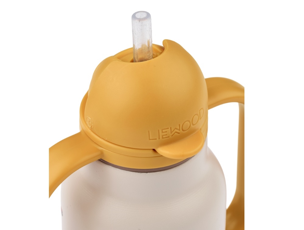 De to håndtag på låget gør det nemt for barnet at holde fast, og det indbyggede sugerør gør flasken ideel til børn, der lærer at drikke selv. Perfekt til børnehaven eller på tur.