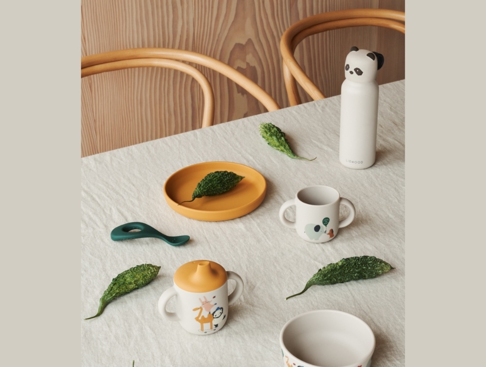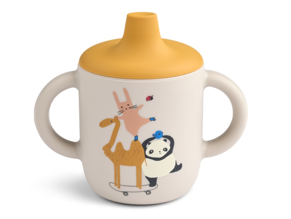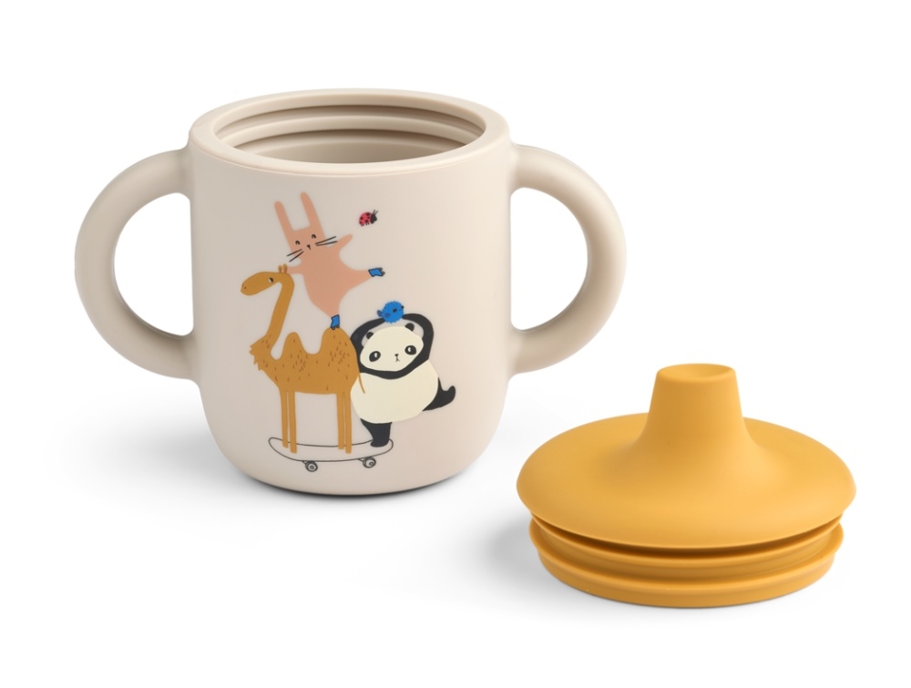 Tudekop i beige nuance fra Liewood. Neil-koppen har et blødt, aftageligt låg med tud og to håndtag, der gør det lettere for små hænder at drikke selv.
