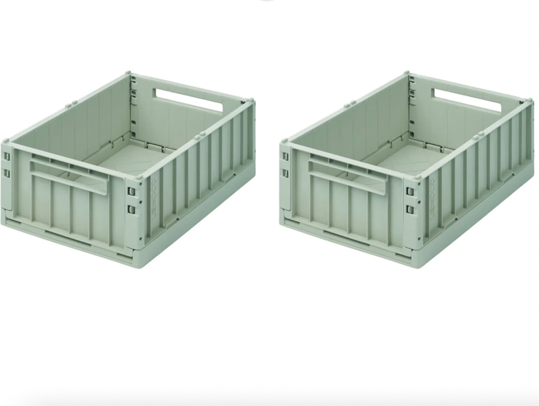 2 fine mellemstore og foldbare opbevaringskasser i farven peppermint fra Liewood.