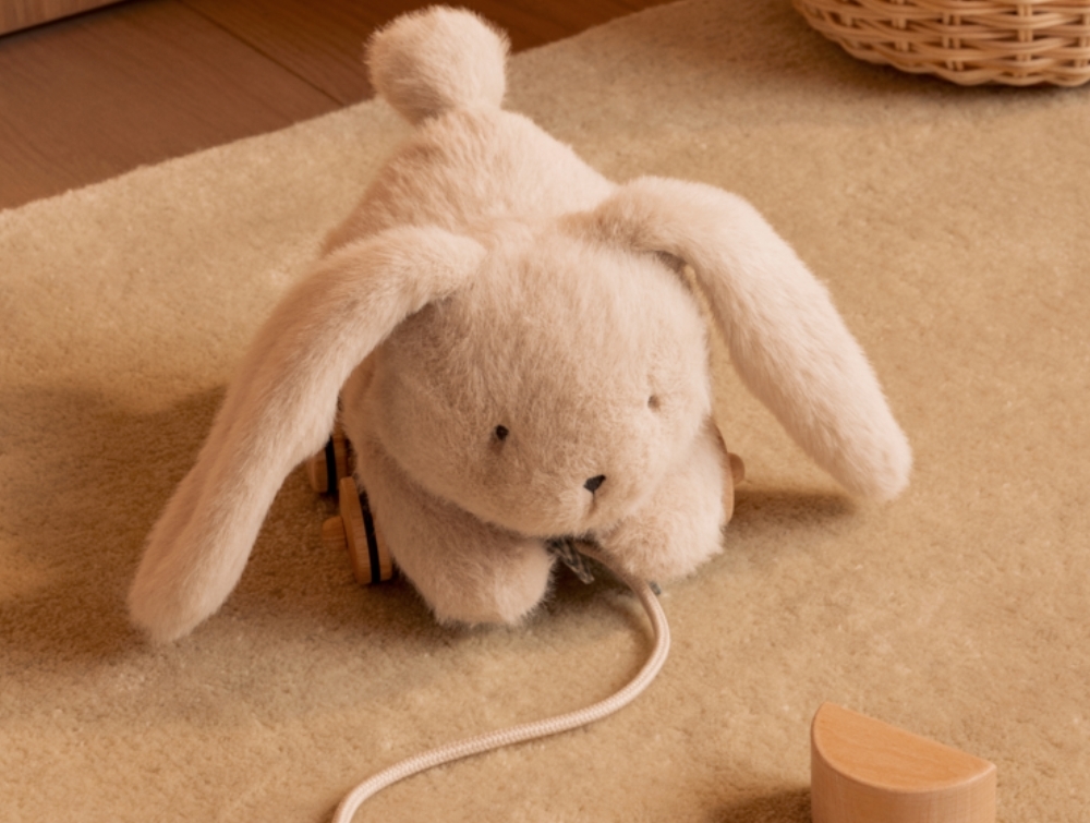 Det søde trækdyr er lavet til små børn, som kan gå og trække legetøjet efter sig. Den bløde overflade og det enkle udtryk gør det til en kær favorit i legekassen.