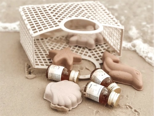 Men Samantha kurvetasken er ikke kun egnet til strandbrug. Den kan også bruges derhjemme til praktisk opbevaring af legetøj, bøger eller andre små genstande. Den er fremstillet af 100% genanvendt LPDE og 40% ny LPDE.