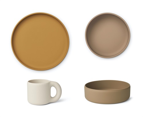 Brudsikkert spisesæt til børn med tre dele i farven sandy multi mix fra Liewood.