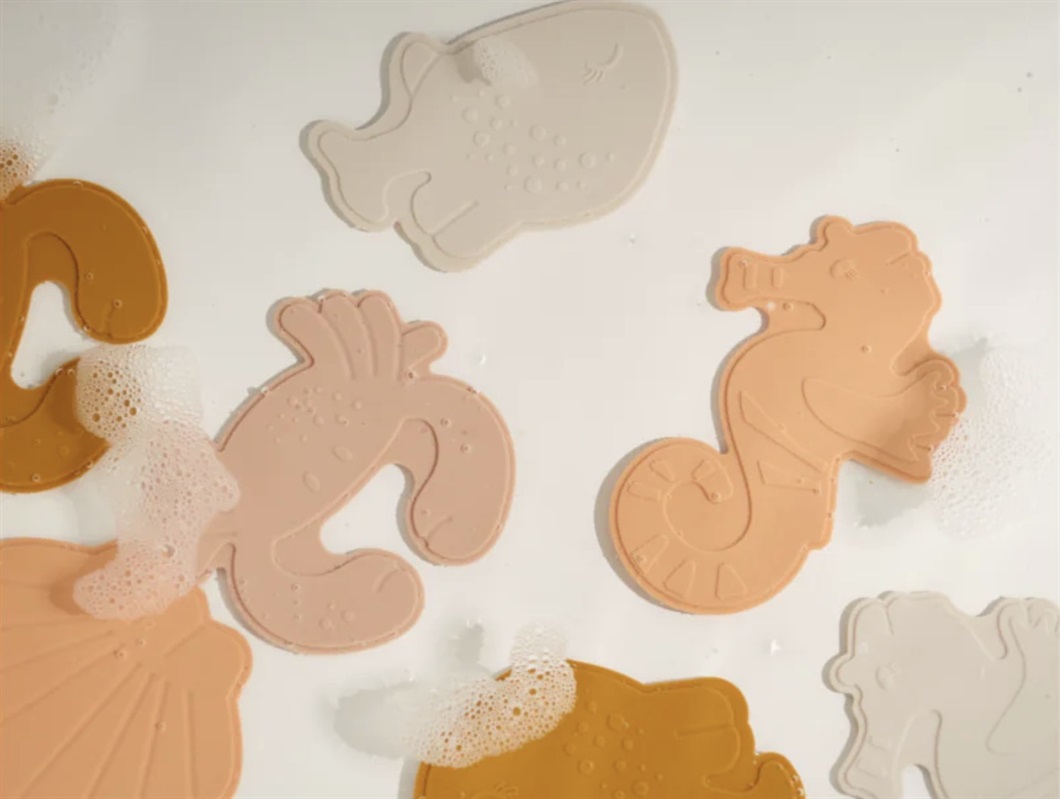 8 skridsikre bademåtter formet som havdyr i farven rose multi mix fra Liewood.