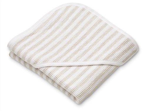 Vaflet og stribet håndklæde med hætte i farverne crisp white og sandy fra Liewood.