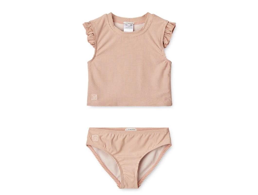 Stribet bikinisæt i farverne tuscany rose/sandy fra Liewood.