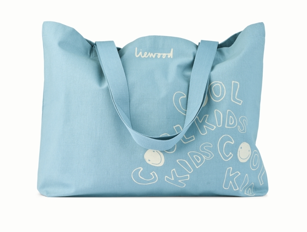 Stor totebag i lys blå nuance (beach blue) fra Liewood med cool kids-print.