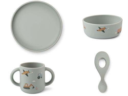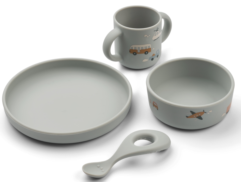 Liewood vehicles/dove blue mix spisesæt Vivi silikone (4-pak)