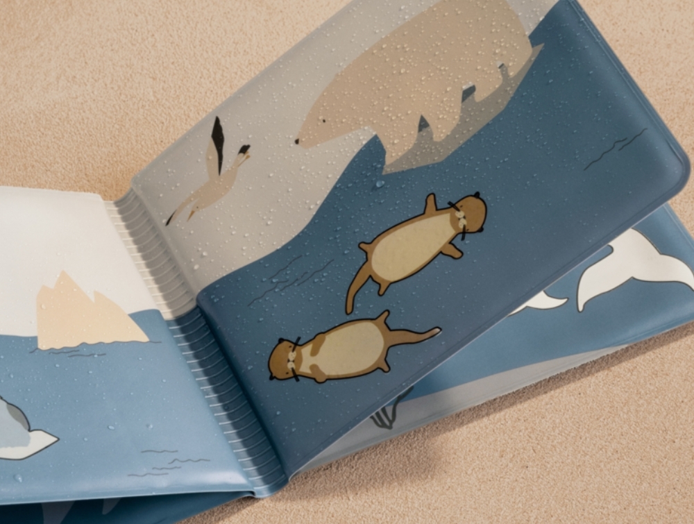 Vandbog i blå nuance fra Liewood med havdyr og arktiske motiver. Waylon vandbog skifter farve, når siderne bliver våde, og giver barnet en rolig og sanselig legeoplevelse uden brug af tuscher eller maling.