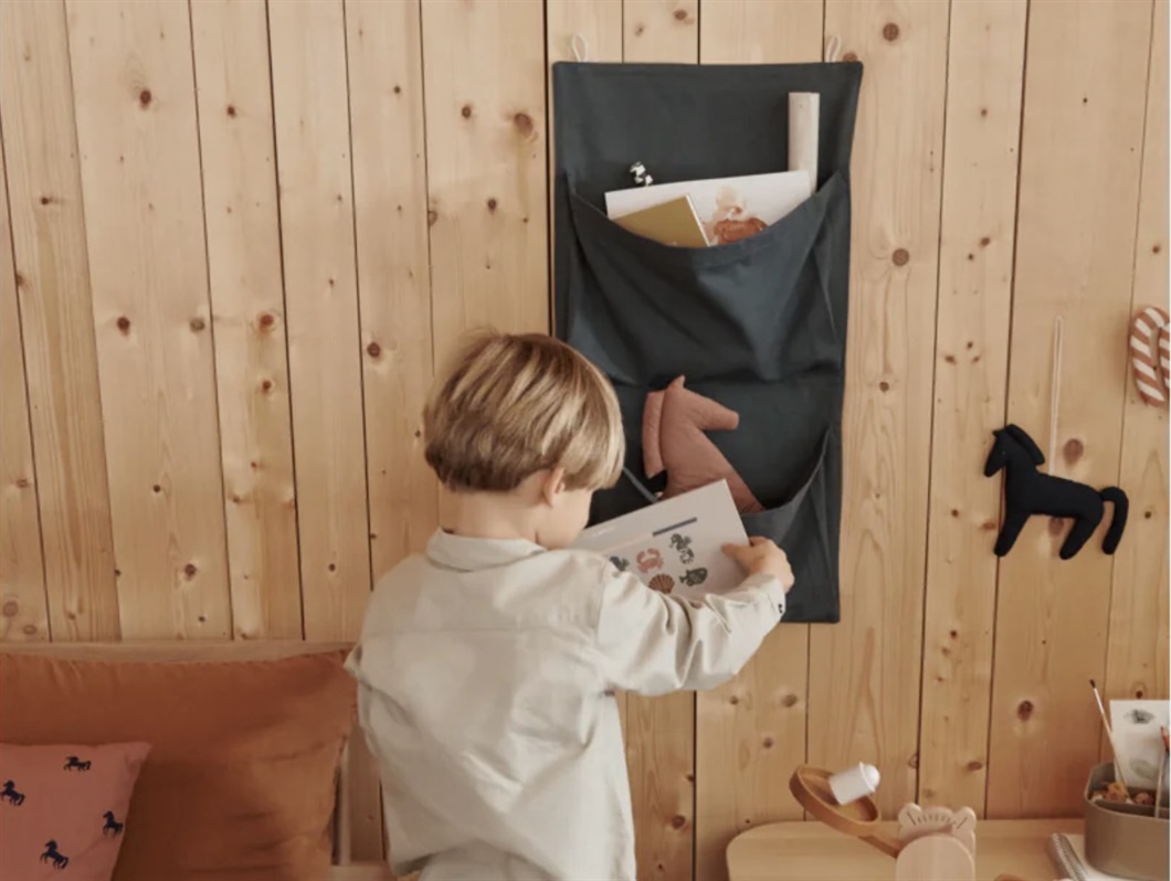 Vægopbevaring i kanvas i farven whale blue fra Liewood.