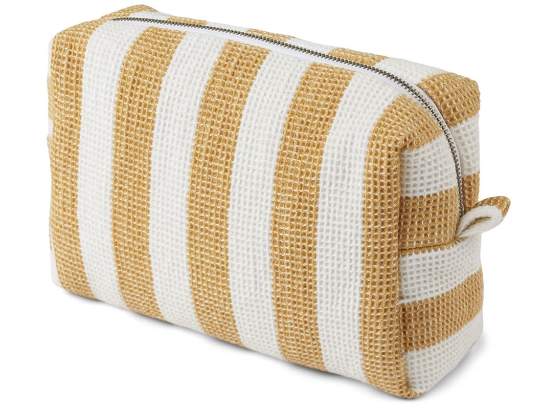 Toilettaske med striber i farverne hvid og yellow mellow fra Liewood.