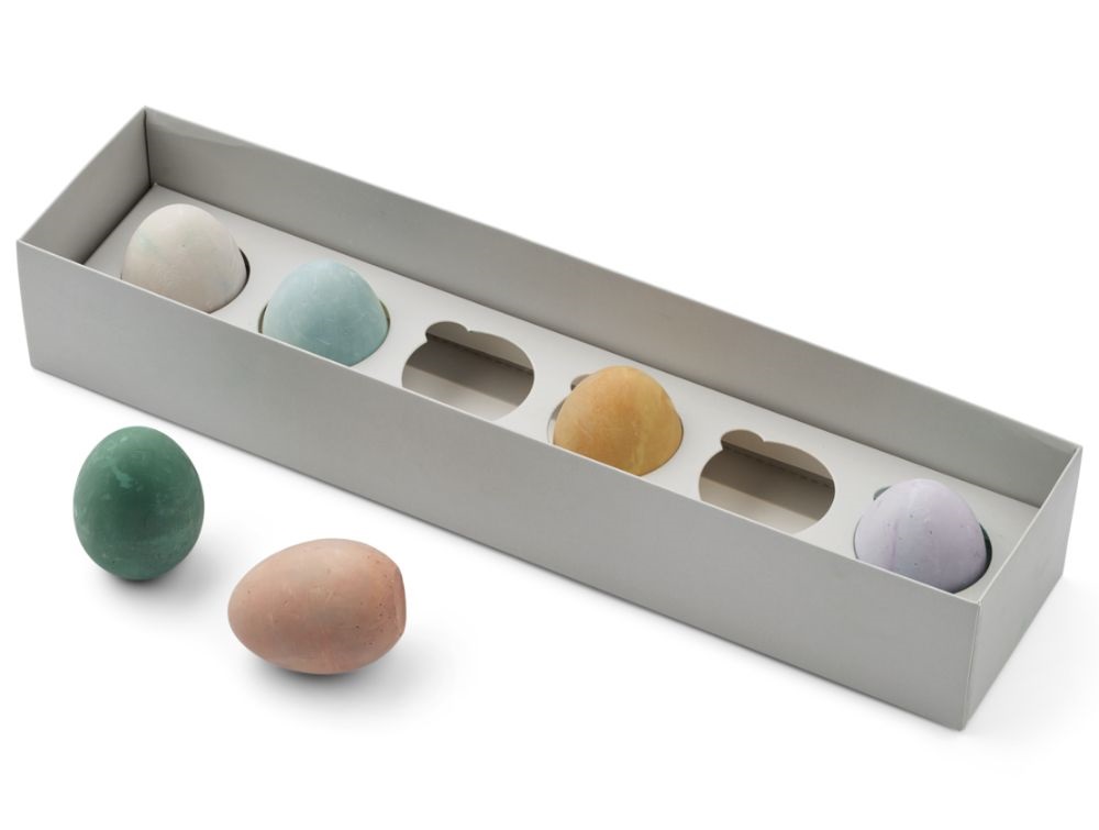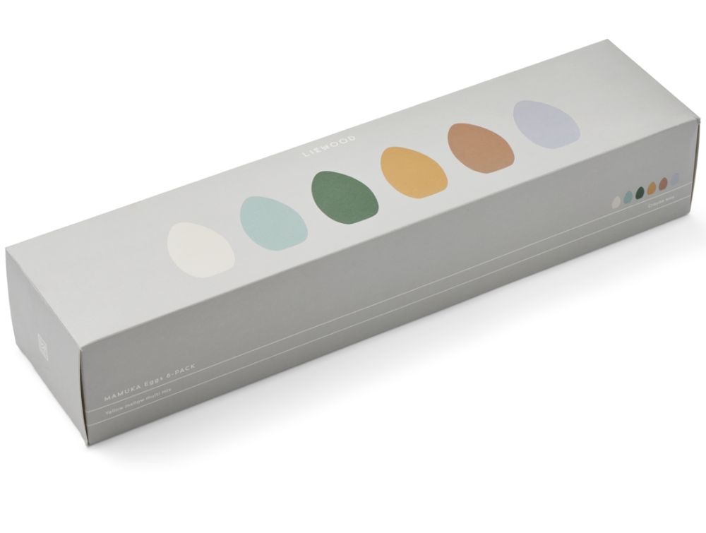 6 æggeformede farvekridt i Liewoods signaturfarver i fin gaveæske fra Liewood.