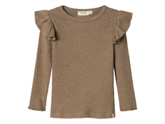 Langærmet top i farven antler med hulmønster fra Lil' Atelier.