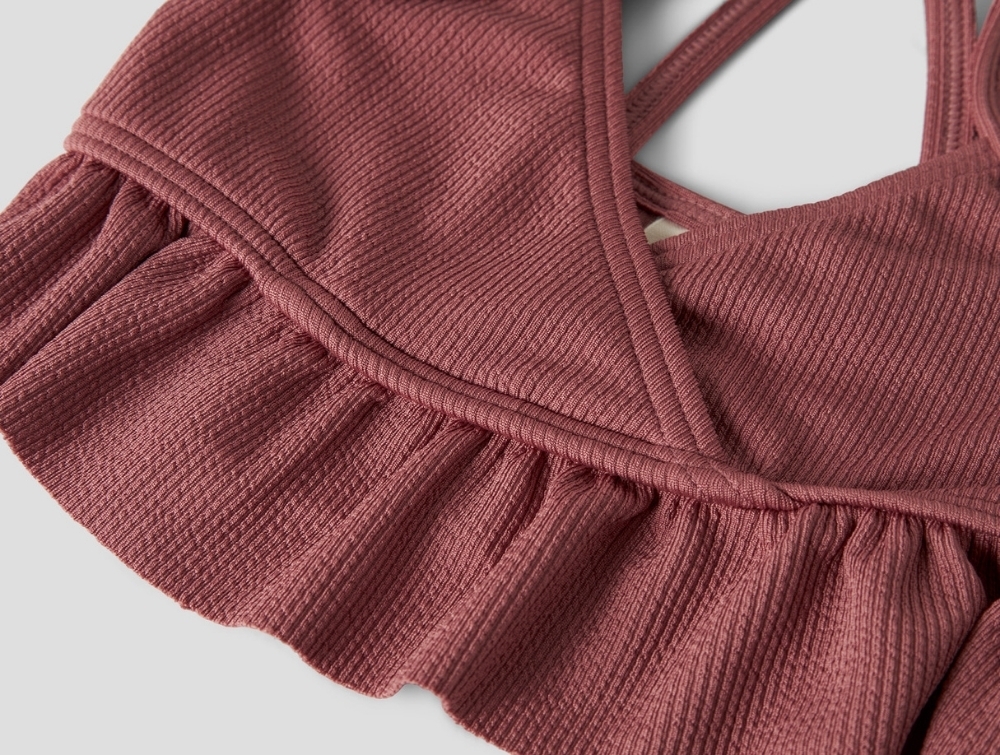 Lil' Atelier bikini i mørk rød med flæser