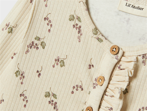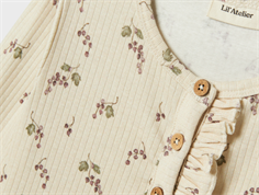 Kjole i farven birch med bærprint fra Lil' Atelier.