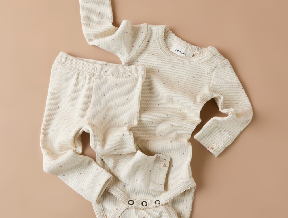 Leggings i farven birch med prikker fra Lil' Atelier.