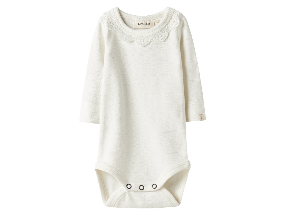 Body i råhvid nuance fra Lil' Atelier med fin blondekrave (coconut milk).