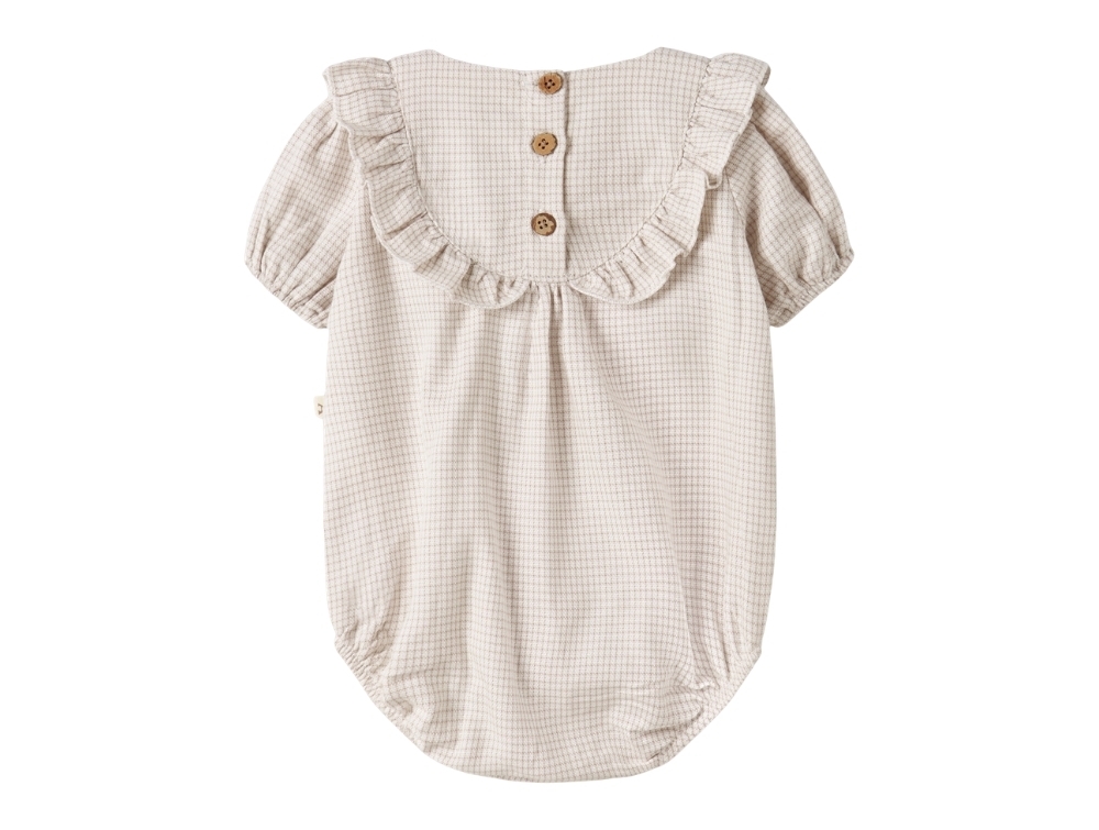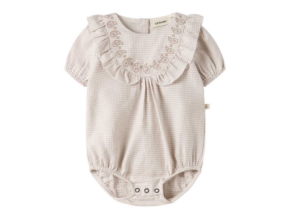 Lil' Atelier romper i råhvid med beige tern, broderi og flæser