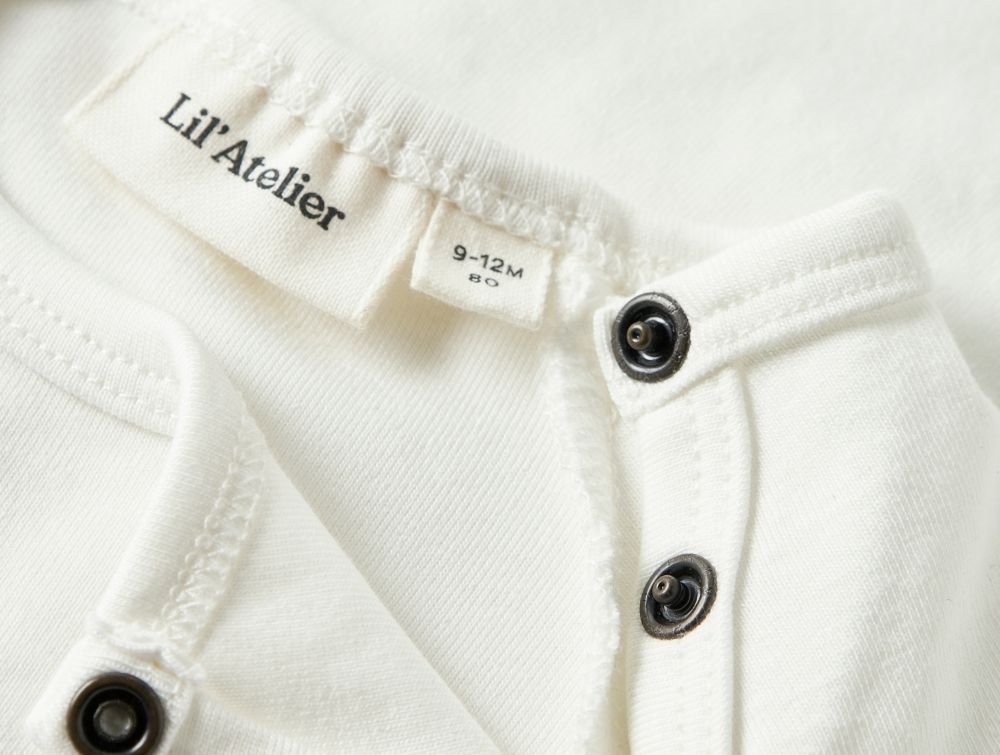 Nærbillede af hals og trykknapper på Lil\' Atelier body i coconut milkNærbillede af hals og trykknapper på Lil\' Atelier body i coconut milk