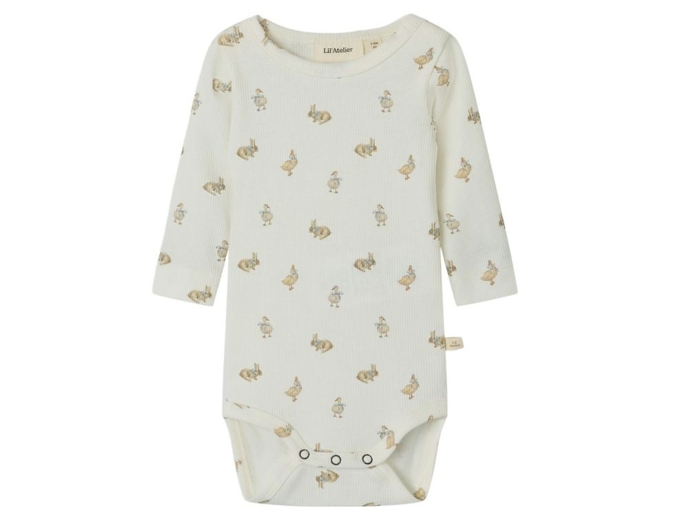 Body i farven coconut milk med print af ænder og harer fra Lil' Atelier.