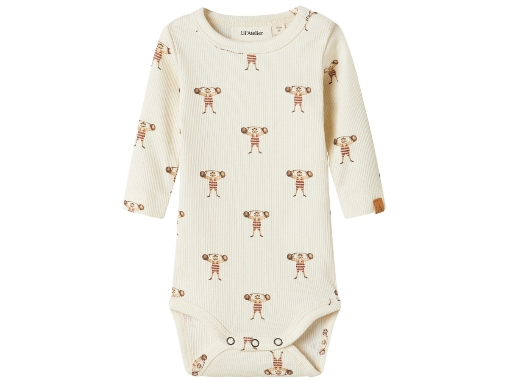 Mere information om Lil' Atelier body turtledove med vægtløfterprint