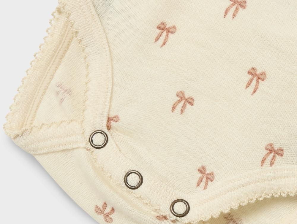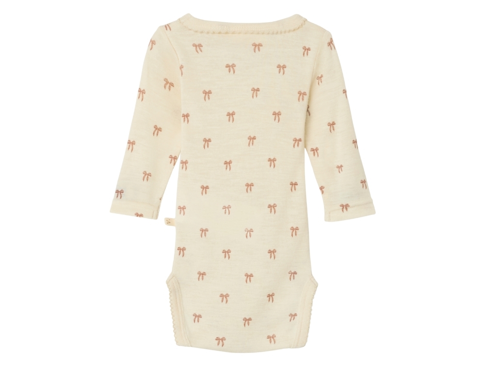Lil' Atelier body turtledove i merinould/modal med sløjfeprint