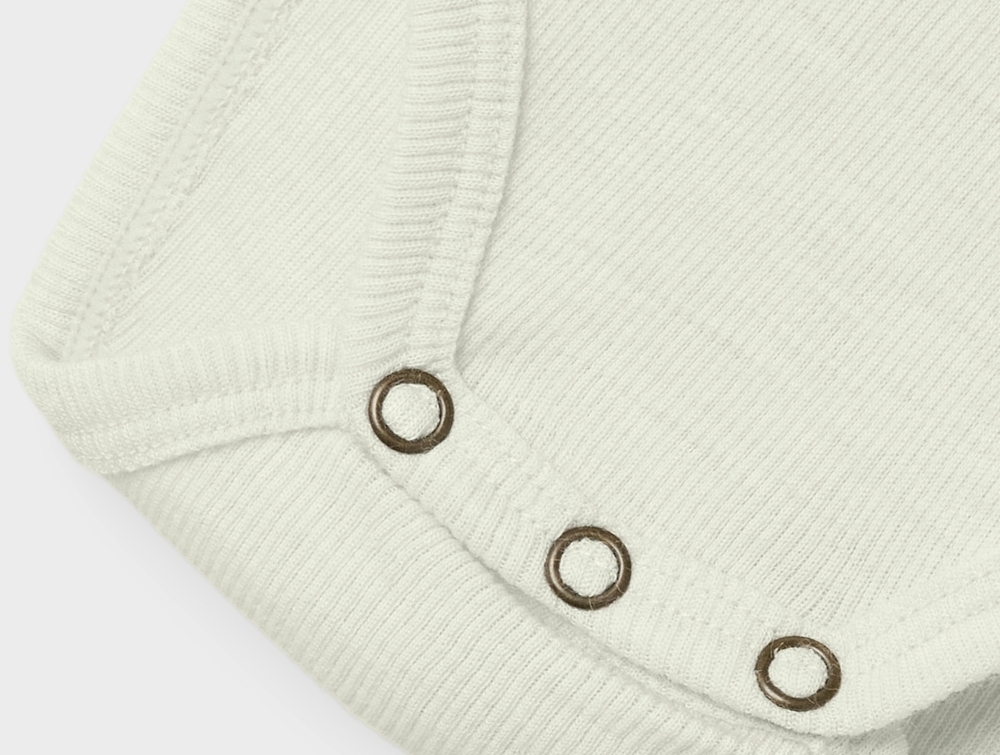 Lil\' Atelier body turtledove melange i uld modal ribLil\' Atelier body i turtledove melange uld modal til babyTrykknapper på Lil\' Atelier body i turtledove melange uld modalBagside af Lil\' Atelier body i turtledove melange uld modal