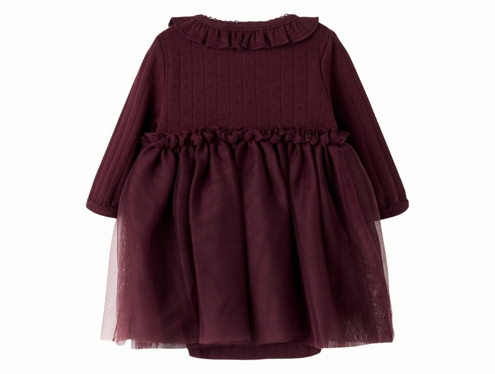 Bodykjole i bordeaux rød nuance (catawba grape) fra Lil' Atelier med fint tylskørt og lange ærmer.