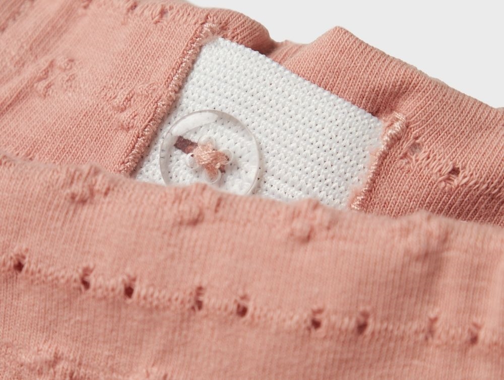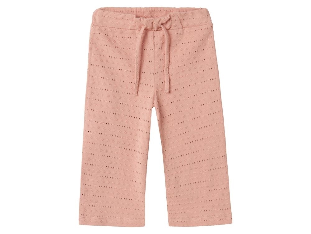 Bukser i støvet rosa nuance (misty rose) fra Lil' Atelier. Designet med hulmønster og justerbar talje.