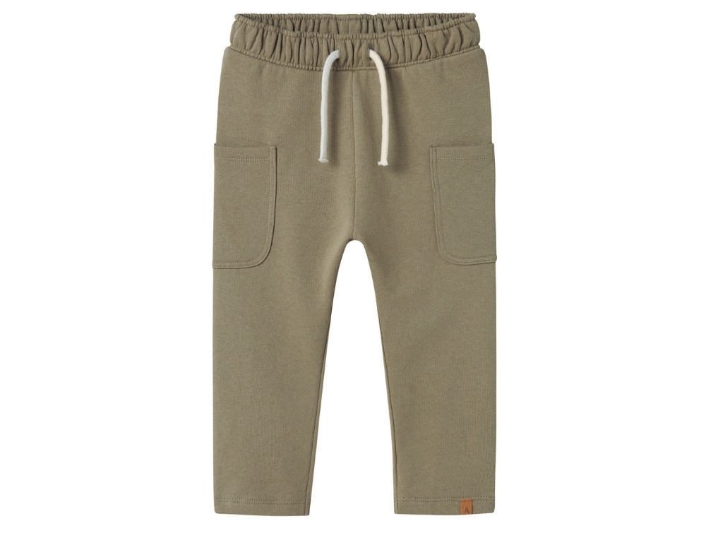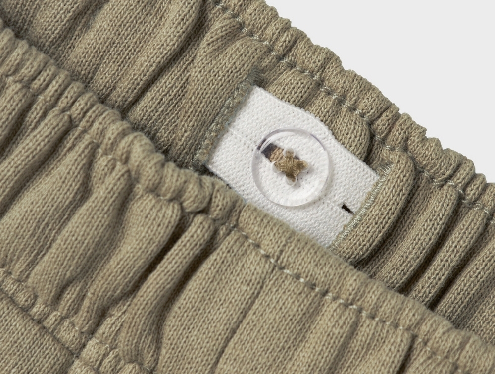 Bukser i støvet grøn nuance fra Lil' Atelier i blød jerseykvalitet. Modellen har elastik i taljen med fast snor og justerbar indvendig elastik for optimal pasform. De to store påsyede lommer foran giver et afslappet og praktisk look.