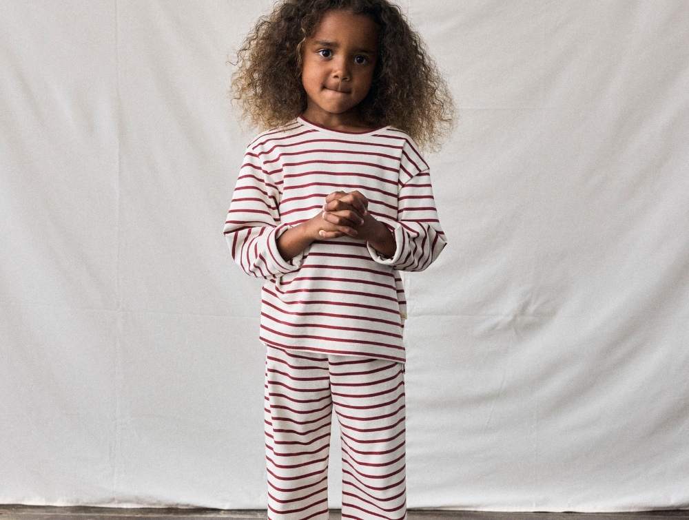 Bukserne er lavet i 100% økologisk bomuld med justerbar talje, så de sidder godt hele dagen. En klassisk og let style, der matcher perfekt med den stribede bluse fra samme serie.