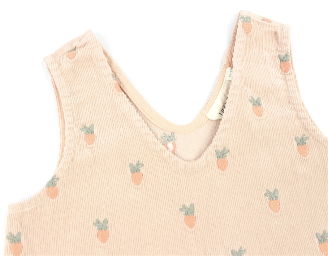 Kjolen er lavet af fløjl med en blød følelse og en ribbet overflade. Den har et spencer design og to små frontlommer til små skatte.