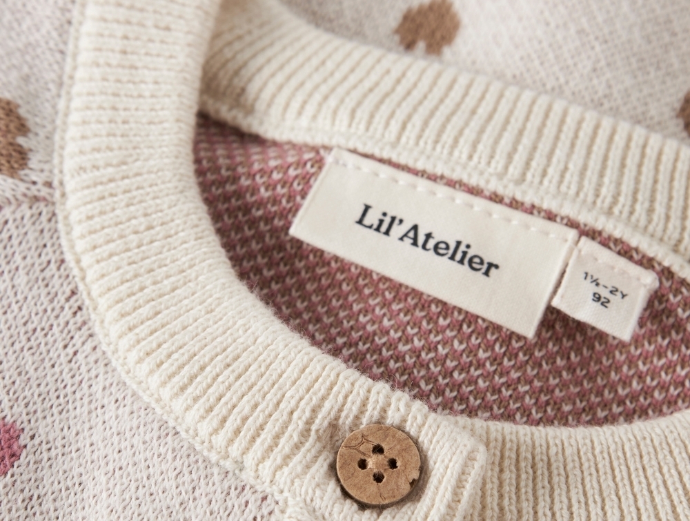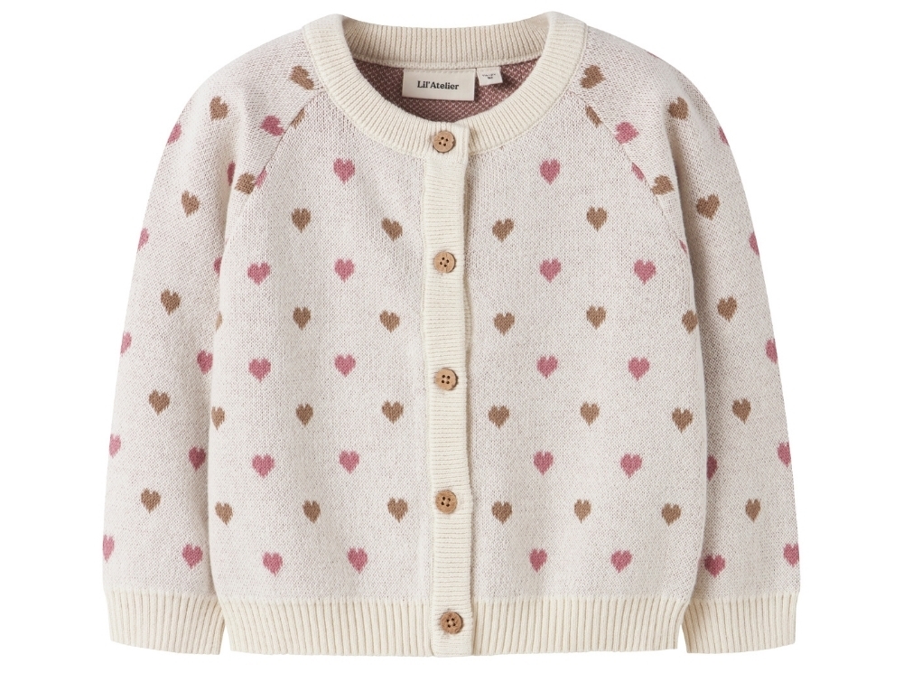 Mere information om Lil' Atelier cardigan turtledove med hjerteprint