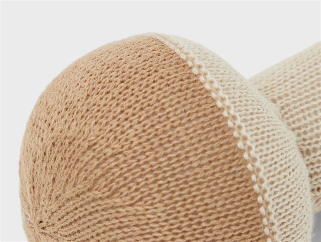 Blød strikket rangle i farven cartouche med form som en svamp fra Lil' Atelier.
