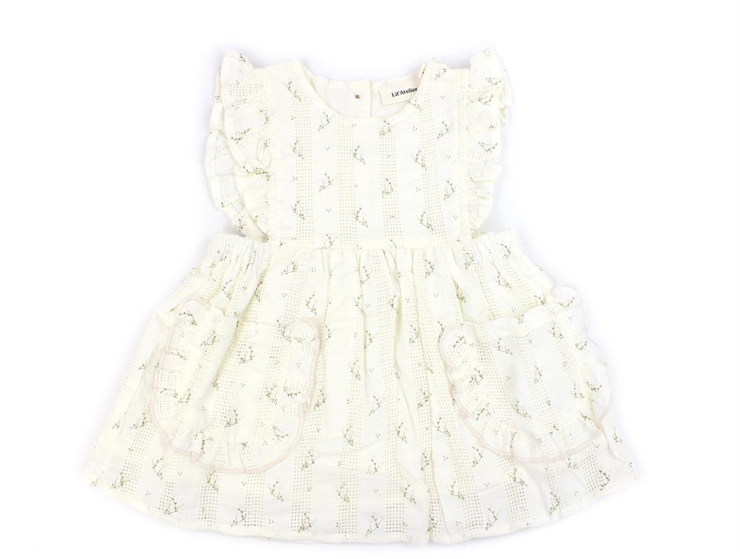 'Overall-nederdel' i farven coconut milk med print, flæser og to lommer fra Lil' Atelier.
