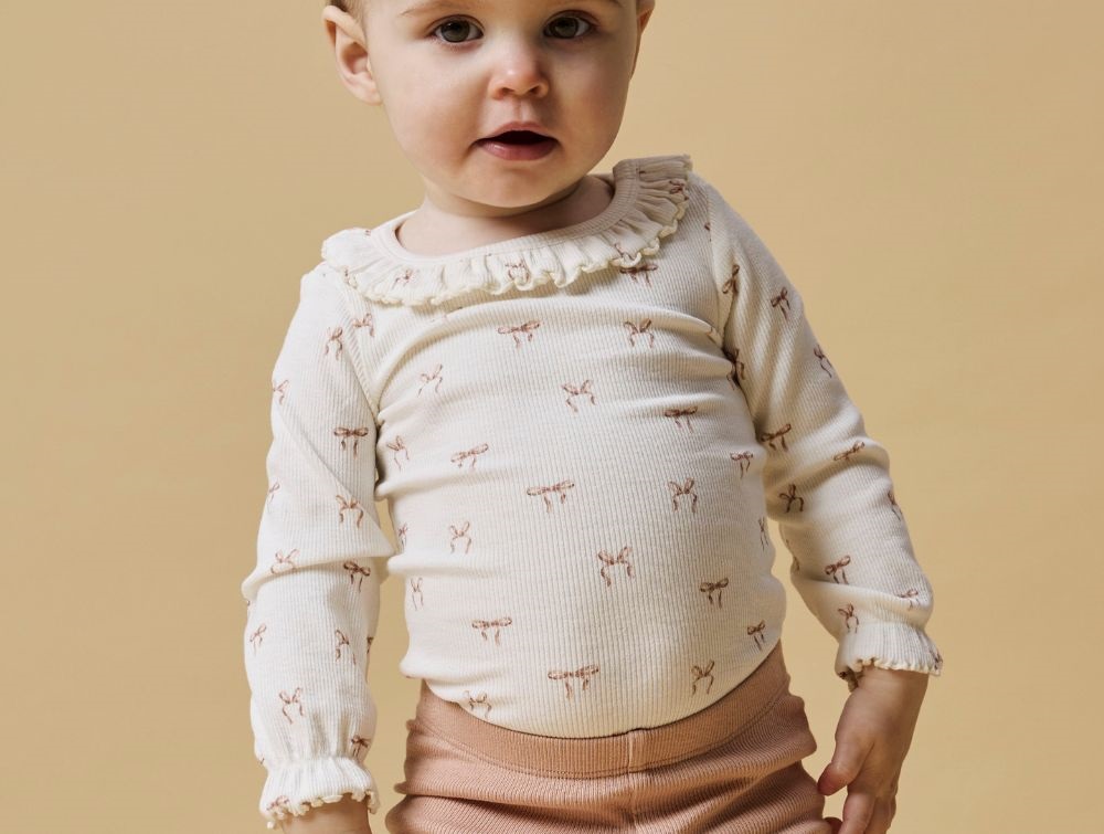 Body i farven coconut milk med sløjfeprint og flæsekrave fra Lil' Atelier.