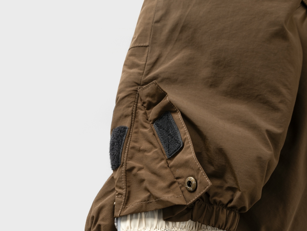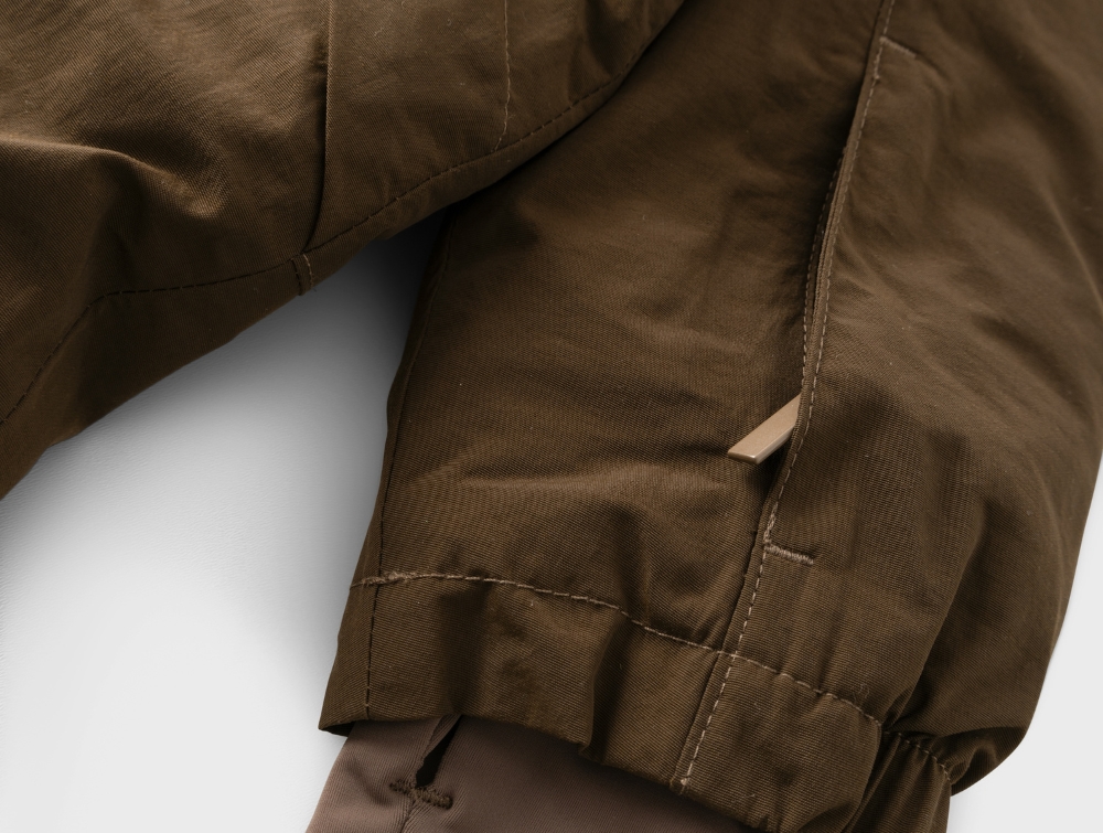 Flyverdragten er vindtæt, har tapede sømme og er vandafvisende (12.000mm) og åndbar (7.000gr/m2/24) og har en slidstyrke på 50.000 Martindale.