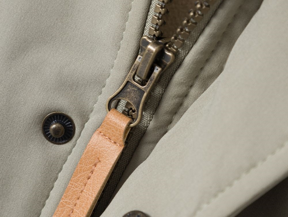 Jakken har to lommer med lynlås og jakken lukkes med lynlås og knapper.