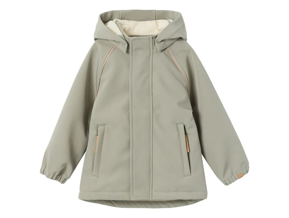 Softshell jakke i farven dried sage med fleecefoer fra Lil' Atelier.